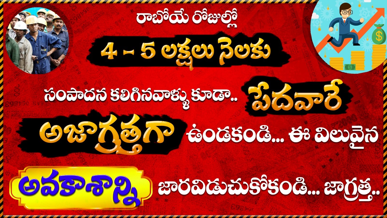 రాబోయే కాలంలో మనం నెలకు" 4-- 5 " లక్షలు సంపాదించి నా మనం " పేద వారమే"..